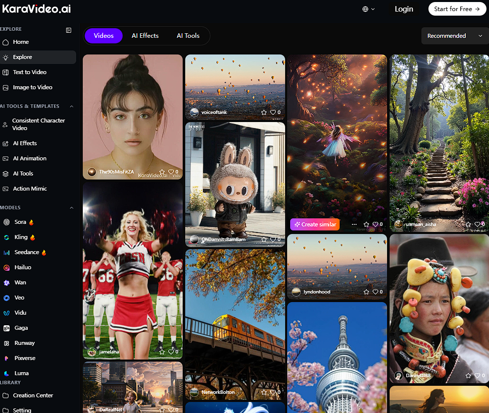 You want a tool that makes video creation simple and powerful. karavideo.ai stands out as a revolutionary platform for creators who want to turn ideas into stunning videos with minimal effort. You can start with text, images, or clips and watch your vision come alive in minutes. karavideo.ai brings together advanced AI engines, a user-friendly dashboard, and cinematic features. You get access to the latest models and effects, so your content always looks fresh and professional.