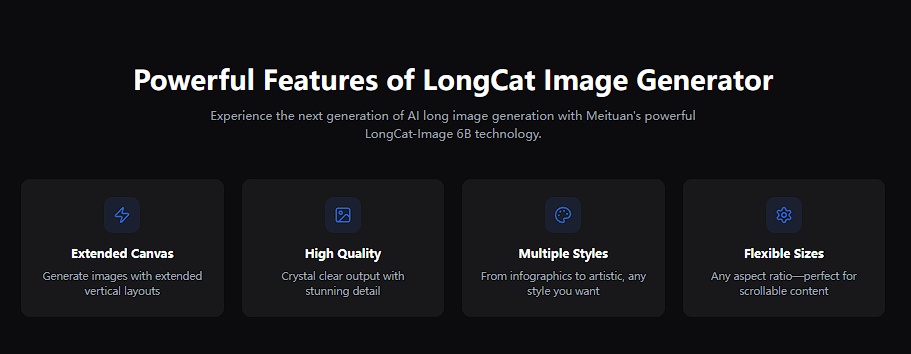 You can do many creative things with The Applications of LongCatImage. This tool helps you make banners for marketing that catch people’s eyes and make them want to look more. Game developers and filmmakers use The Applications of LongCatImage to make art and show what characters or places might look like. If you like comics, you can make long comic strips for webtoons and phones. Product designers use The Applications of LongCatImage to show products in different places or make patterns for clothes. You can also use The Applications of LongCatImage for your own fun projects, like making cool wallpapers or posters.